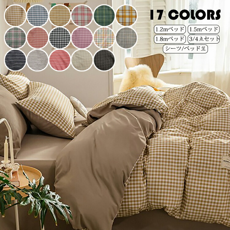 チェック布団セット 布団カバー ベッド笠 枕カバー シングル 通気性 肌に優しい 吸汗速乾 掛けカバー 敷きカバー 快適 おしゃれ 安い キッズ 大人 父の日 母の日 プレゼント