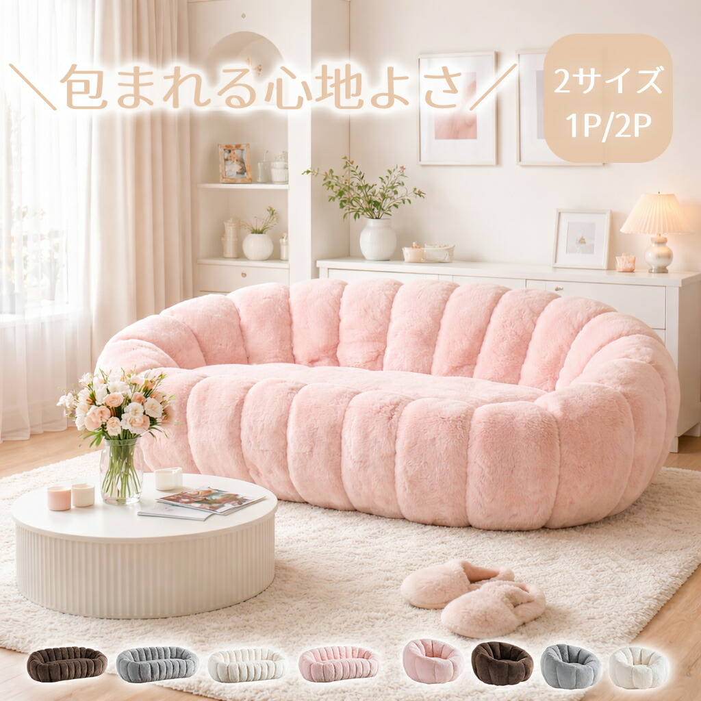 ソファ 2人掛け 包み込まれる ローソファ フロアソファ 1P 2P もこもこ ボア生地 ホールド感 丸型 シェル型 サロン リビング おしゃれ 美容室