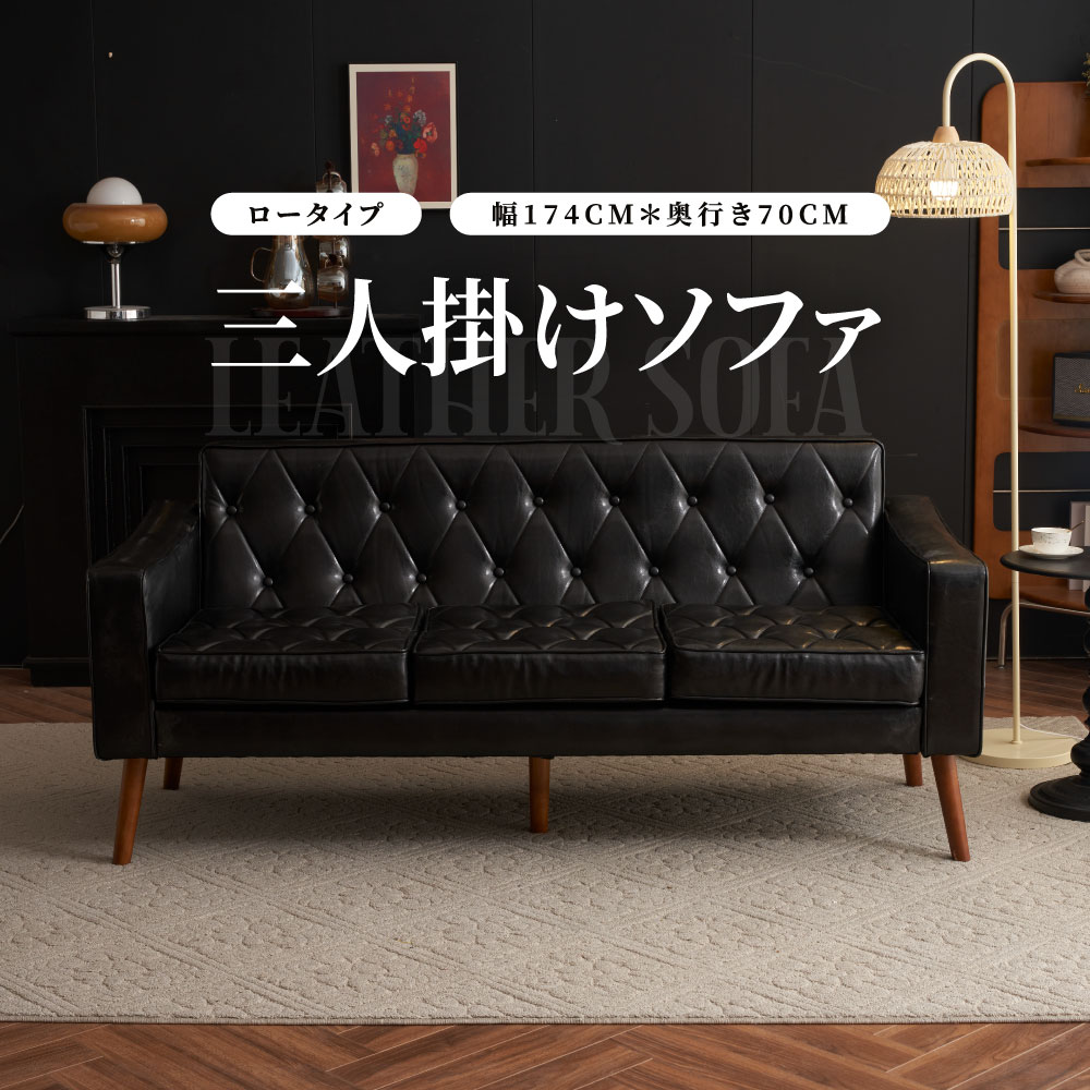 新発売 ソファ ソファー ソファベッド 3人掛け PUレザー 3P 木脚 肘あり カウチソファ コーヒーソファ PCV 3人掛けソファー ローソファー コンパクト リビングソファー おしゃ ハイバック