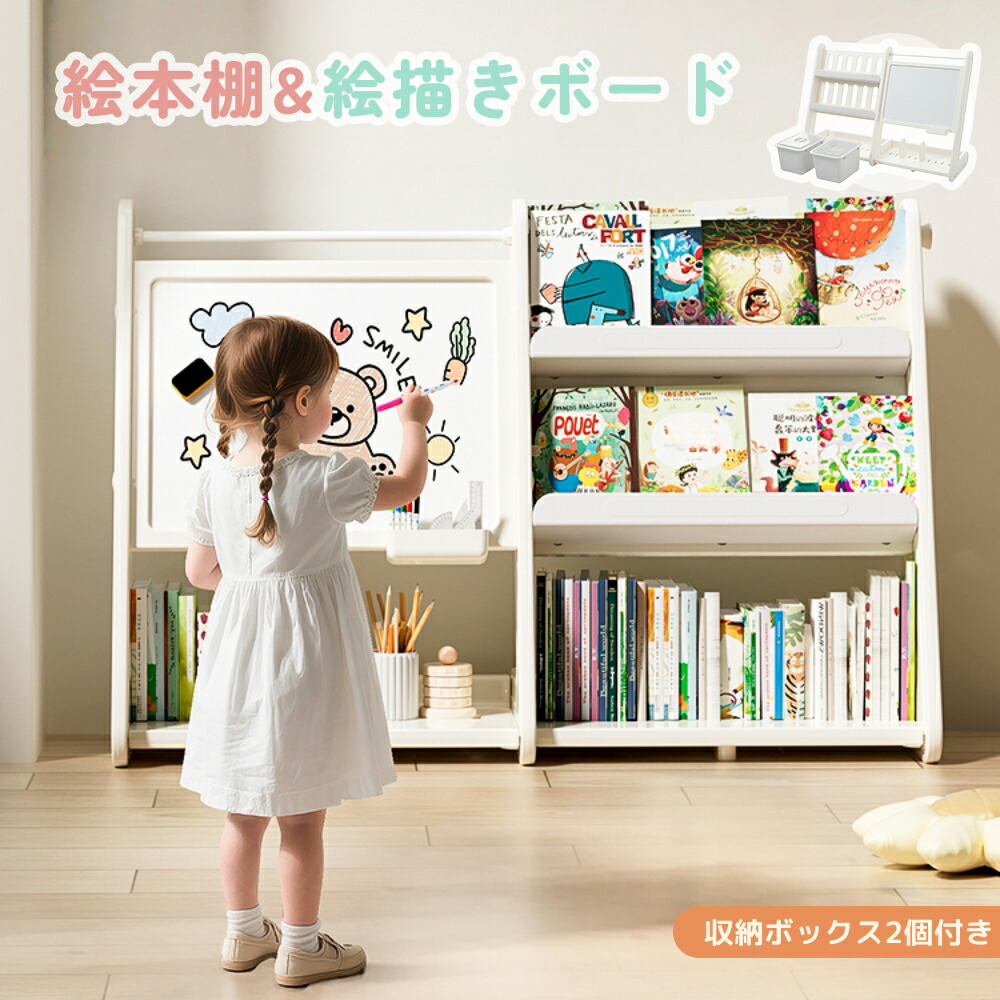 絵本棚 お絵かきボード 収納ケース おしゃれ ホワイトボード ケース 子供部屋本棚 書棚 絵本棚 大容量 キッズ 収納ラック ラック おしゃれ 組立カンタン こども