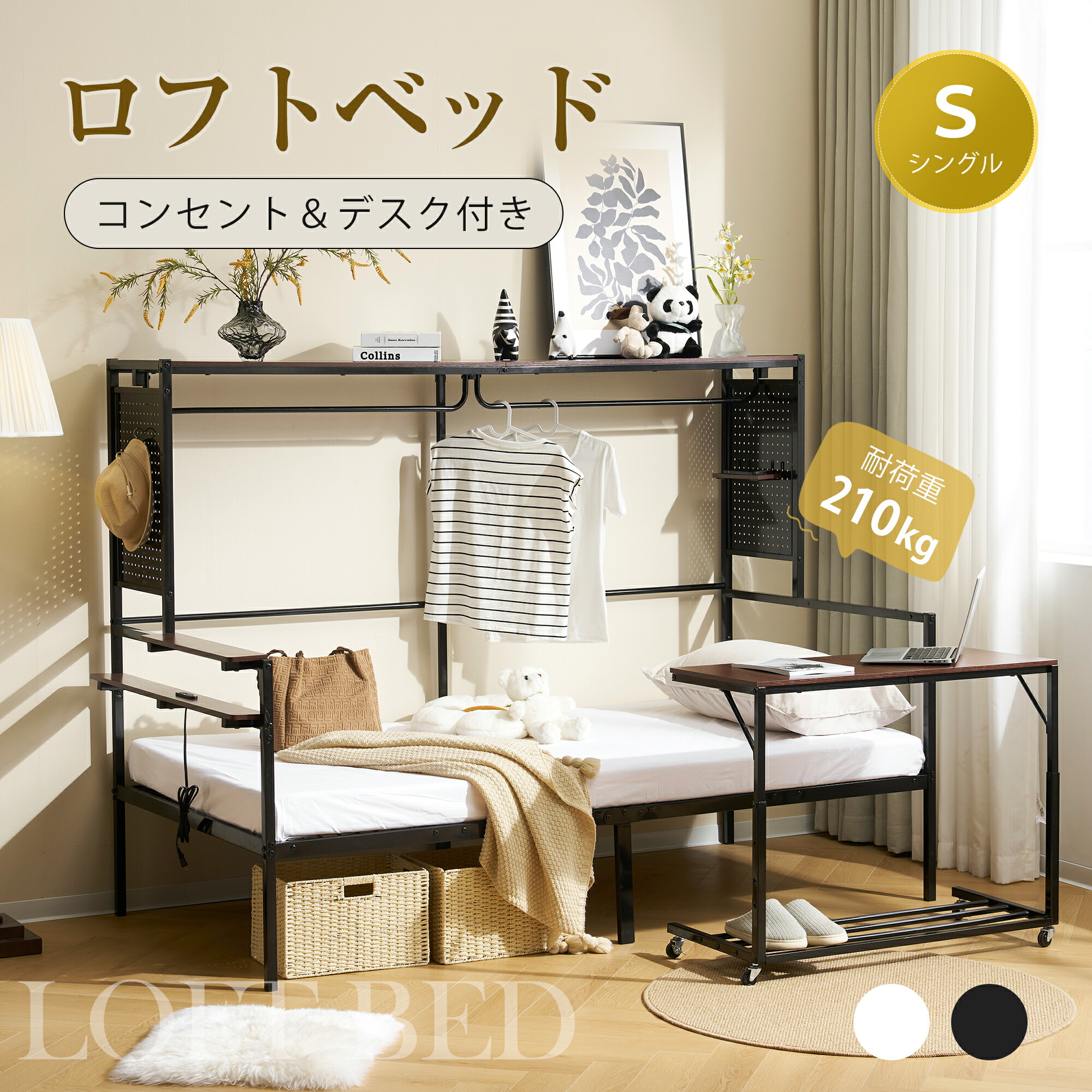 ロフトベッド システムベッド シングル 階段 宮 コンセント付き デスク付き 耐荷重150kg 子供部屋 子供ベッド 下収納 パイプベッド 省スペース スチール 頑丈 耐震 一人暮らし 金属