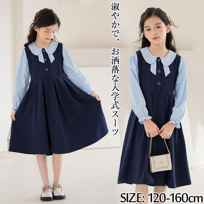 フォーマル ワンピース キッズ 子供服フォーマル 女の子 長袖 襟付き こども服 子ども服 無地 卒業式 入園式 スーツドレス パフスリーブ ドレス キッズ服 ガールズ 子供用 七五三