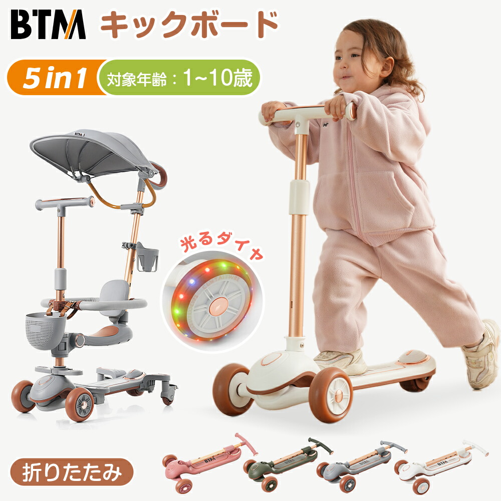 キックボード 子供用 3輪 座れる 乗れる 折りたたみ 座り 子供用三輪車 ガードレール かじとり 手押し棒 おしゃれ 4in1 BTM 自転車 ランニングバイク 幼児用 キッズ かわいい 乗用玩具