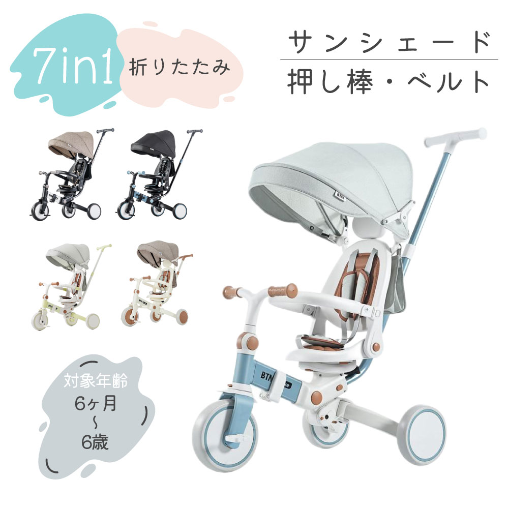 子供用三輪車 ベビーカー 折りたたみ かじとり 手押し棒 カバー ストッパー付き おしゃれ 7in1 BTM 1歳 2歳 3歳 座面回転 自転車 おもちゃ キックバイク 幼児用 キッズバイク 乗用玩具