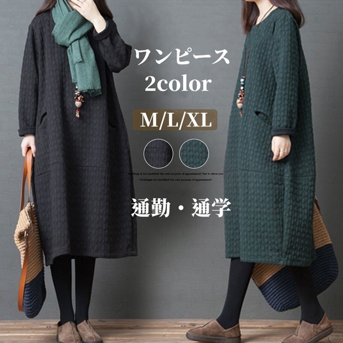 ワンピース レディース 長袖 ロング丈 Aライン 着痩せ ゆったり 体型カバーコーデュロイ 春 秋 冬 通勤 OL 20代 30代 40代 きれいめ 無地 オシャレ 50代