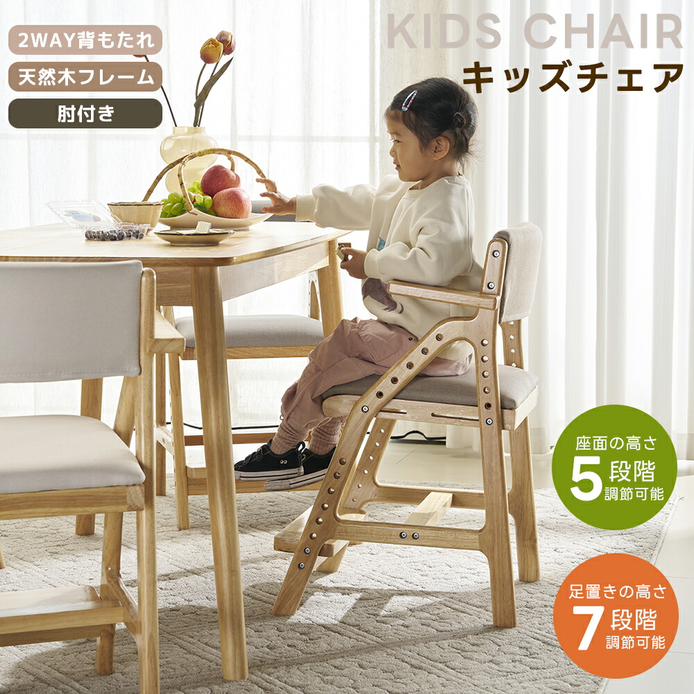 学習チェア 木製 高さ調節 キッズチェア 学習椅子 スツール ひじ掛け 子供椅子 姿勢 学習いす 足置き 天然木 北欧風 ダイニングチェア 椅子 5段階 シンプル リビング学習 子供チェア 高さ調整