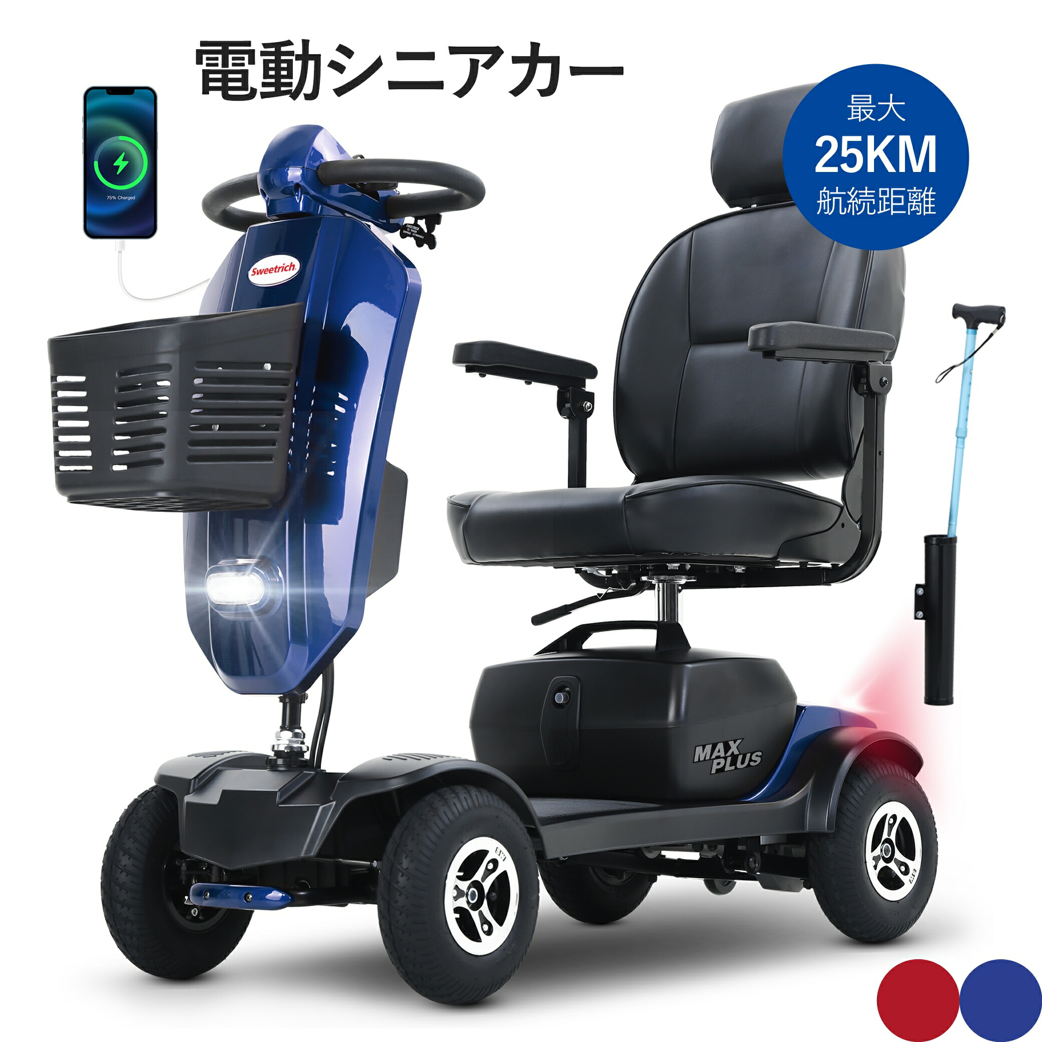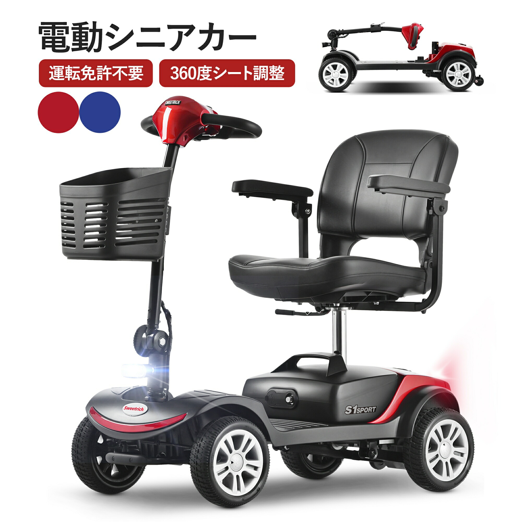 【1年保証】電動シニアカート 選べるカラー 電動カート シルバーカー 車椅子 電動車いす 電動車椅子 介護 福祉 充電 折りたたみ 軽量 四輪車 移動 高齢者 スクーター お年寄り