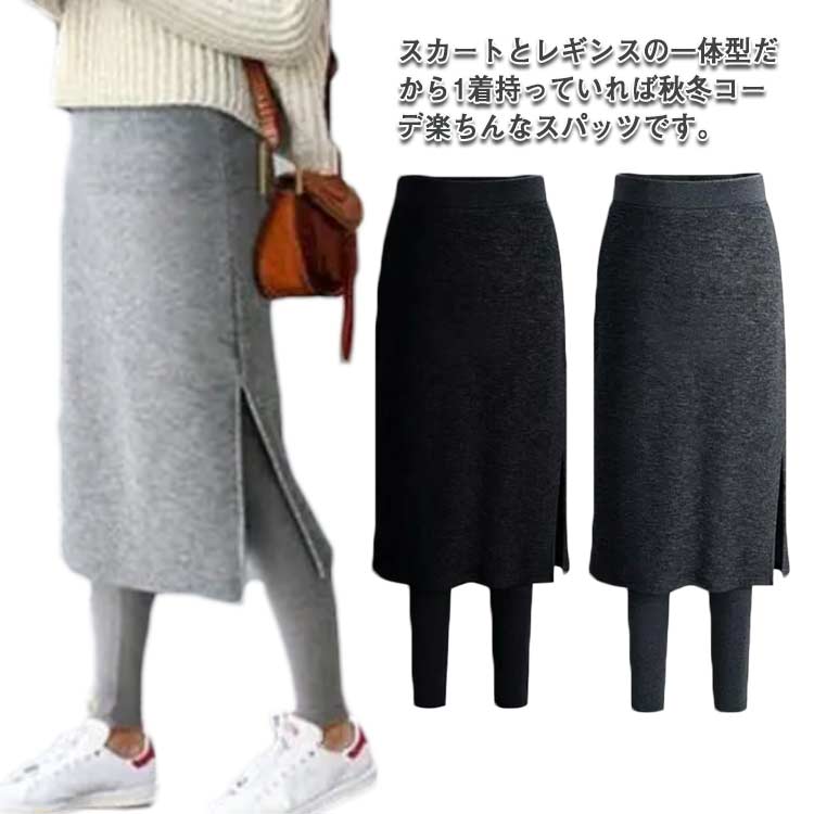 スカートレギンス付き ロング丈 サイドスリット おしゃれ