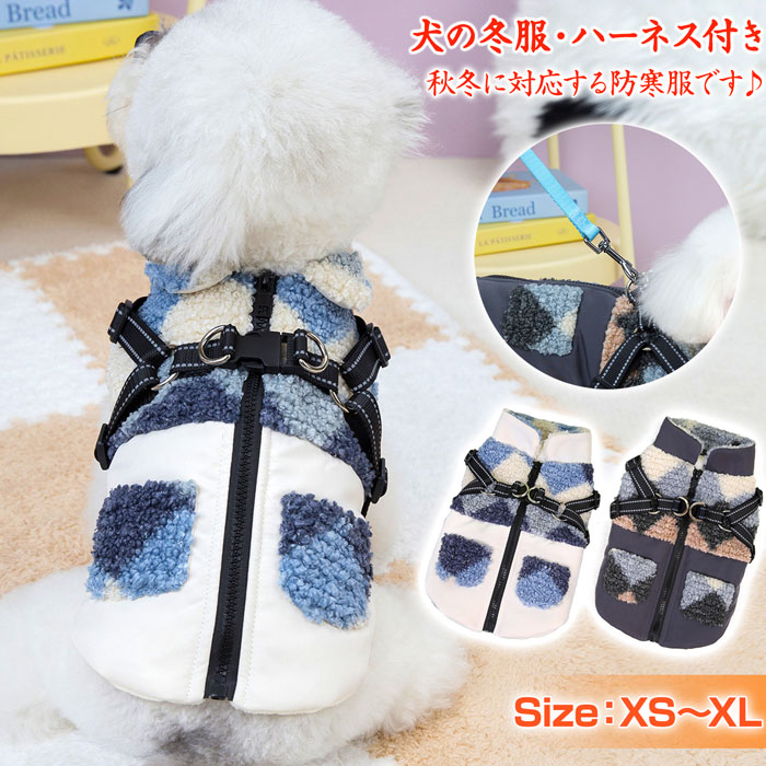 犬 冬服 背中開き 防寒 ハーネス付き 犬の服 冬用 ハーネスウェアー ベスト アウター 小型犬 暖かい コート 秋冬 おしゃれ ペットウェア 一体型 裏起毛 中 ハーネス