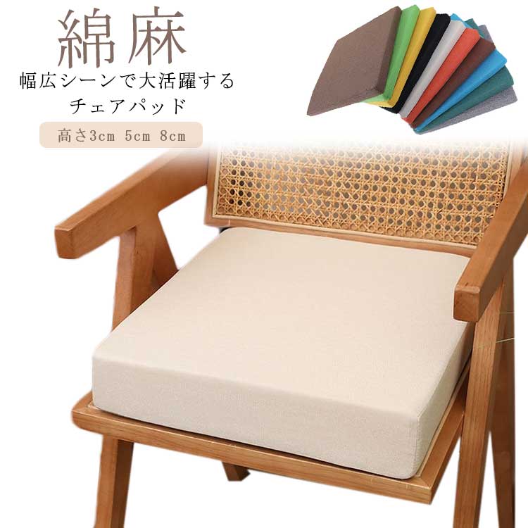 いす 高さ3cm イスクッション チェアパッド 座布団 5cm 椅子クッション 40×40cm 綿麻 北欧 厚手 腰痛 フロアクッション 50×50cm 四角 スクエア 45×45cm