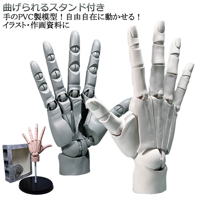 1 ハンドモデル 左手 右手 R L 可動式 バイオニック指関節 ネイルチップ付き アニメ デッサン用素体美術 曲げられるスタンド付き フィギュア ホワイト スキンカラー モデル ハンド グレー