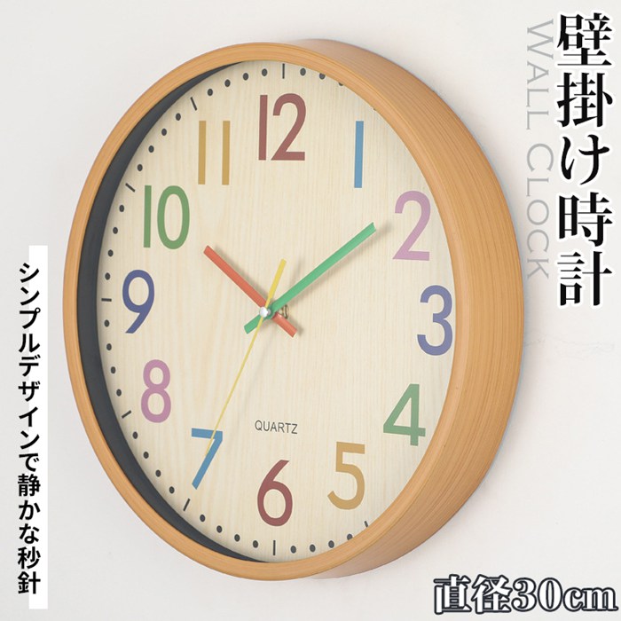 子供用 壁掛け時計 丸型 非電波 静音 おしゃれ 直径30 掛け時計 軽量 子供 キッズ 壁時計 北欧 時計 壁掛け 子供部屋 かわいい 可愛い 丸い 見やすい 軽い シンプル 大きい 静か