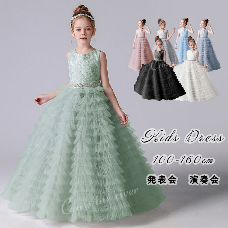 ドレス 子供 ピアノ 発表会 青 緑 白 黒 140 ロングドレス 演奏会 女の子 子どもドレス 結婚式 ワンピース 小学生 袖なし パーティードレス シンプル ジュニア キッズ 中学生 フォーマル