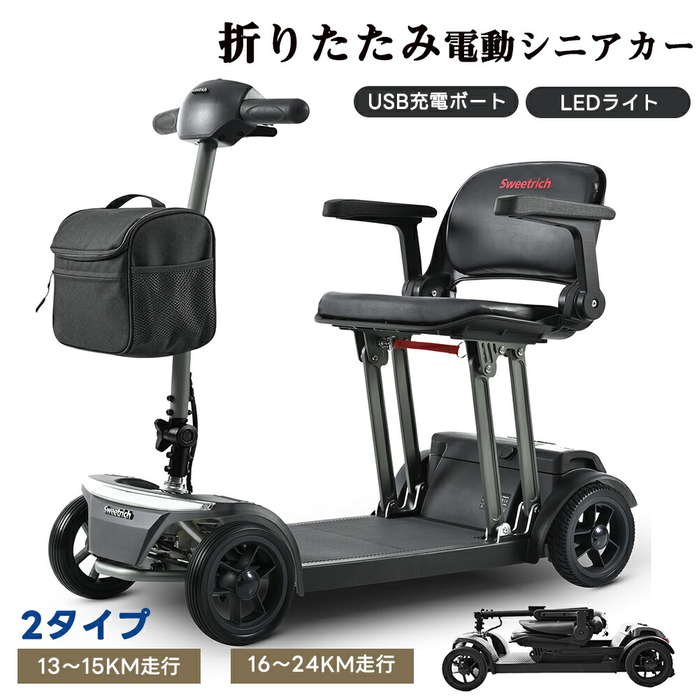 電動シニアカー 折りたたみ式 電動カート シルバーカー アルミフレーム USB充電口 電動車椅子 前後LEDライト 15km走行 24km走行 180Wモーター 軽量 シニア 介護 電磁ブレーキ搭載