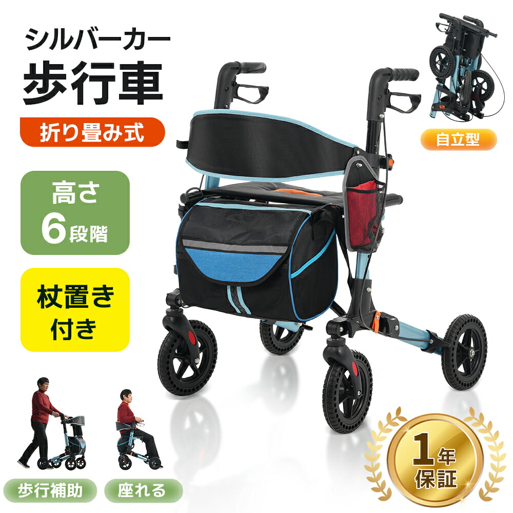 【1年保証/送料無料】 歩行車 歩行補助 軽量 介護用品 車椅子 シルバーカー 施設 入院 病院 リハビリ サポート 歩く 怪我 訓練 外出 屋外用 手押し車 歩行器 座れる 老人車