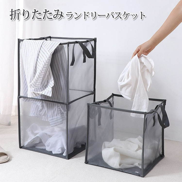 ランドリーバスケット 折りたたみ 洗濯かご メッシュ ランドリーバッグ 大容量 大きい 通気性 収納 スリム ランドリーボックス クリーニングバッグ 持ち運び 自立 洗濯物入れ 一 二段 洗濯 ダブル
