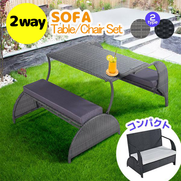 ガーデンファニチャー 2人 4人掛け 2way 折りたたみ 雨ざらし コンパクト ガーデン テーブル セット 屋外 ガーデンソファ ラタン調 ガーデンテーブル 屋外家具 樹脂 ホテル ガーデンチェア