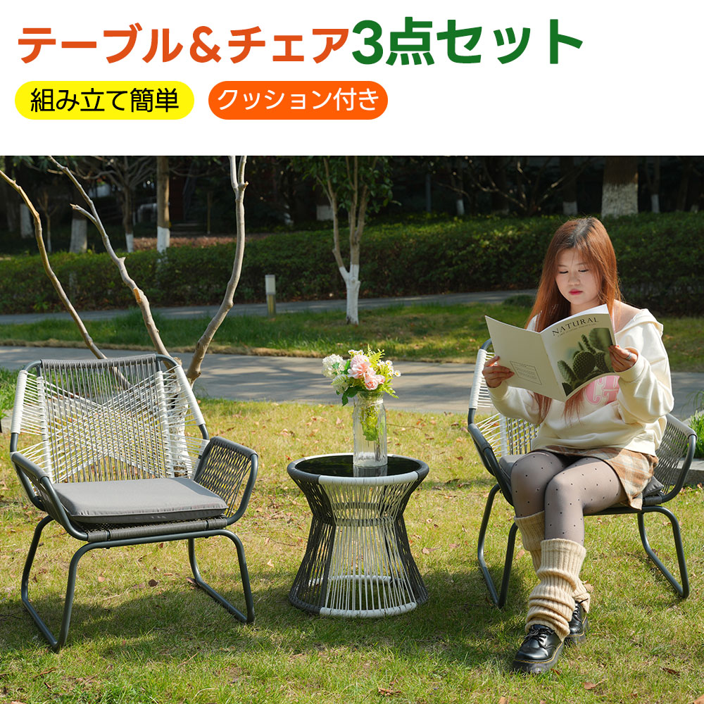 ガーデンファニチャー テーブル 3点セット 2脚 ガーデン ベランダ ガーデンチェア セットテーブルセット クッション付 ホテル カフェ 屋外家具 高級 ソファ テラス