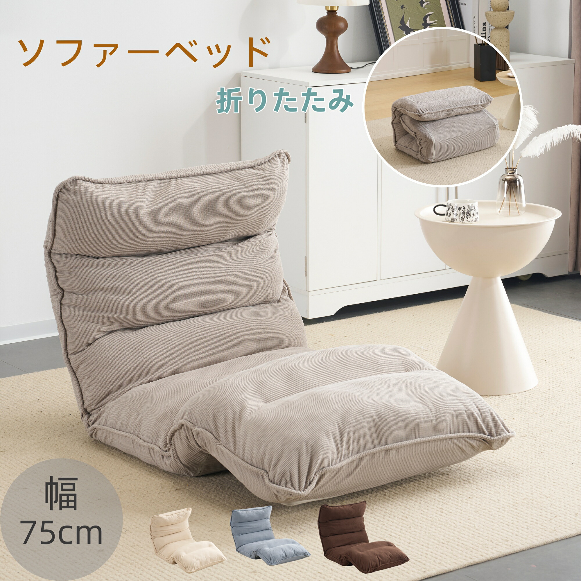 ソファーベッド ソファベッド ローソファー 1人掛け マルチに使える 幅75 18段階 座椅子 折り畳み コンパクト 折りたたみ おしゃれ 完成品 組立て不要 三カ所リクライニング可能