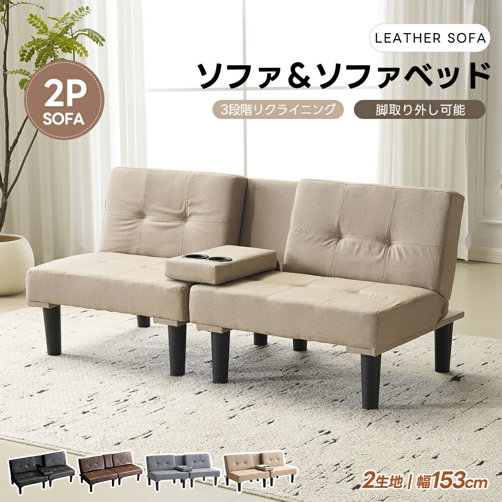 ソファーベッド ソファー 2人掛け 背もたれ3段階 ローソファ PUレザー ファブリック 2P リクライニング ロータイプ 脚取り外し可能 ソファーベット ベッド