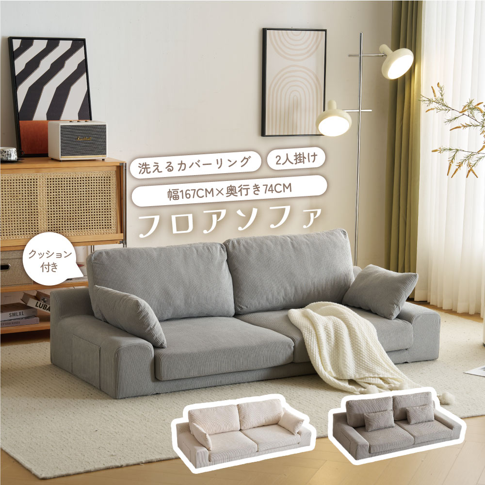 ソファ ローソファー 2人掛け ソファー 幅167cm 3人掛け フロアソファー 2.5人掛けソファ ソファベッド ファブリック かわいい 低め HINCES おしゃれ