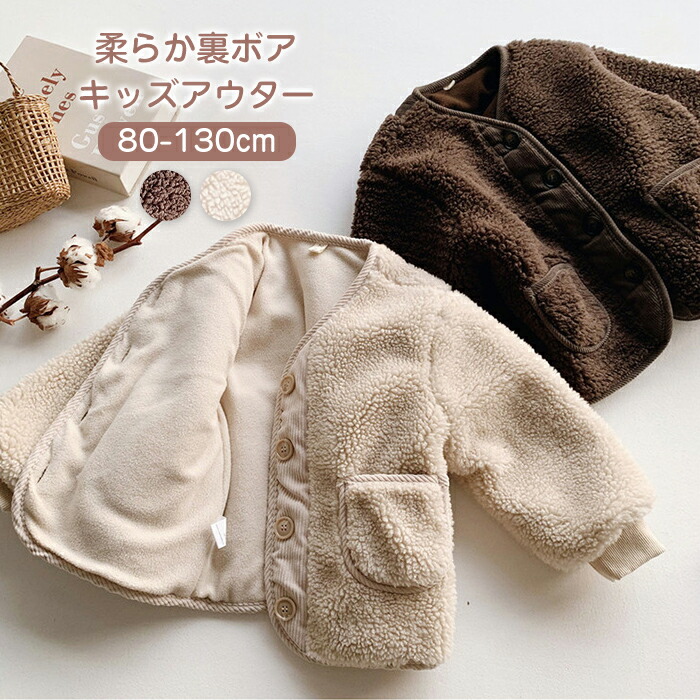 限定ポイント5倍高評価 洗えるボタン開きボアジャケット 子供服 キッズ ベビー アウター 男の子 女の子 チップス フリース トップス 裏ボア フードなし 柔らかい 防寒 かわいい あったか