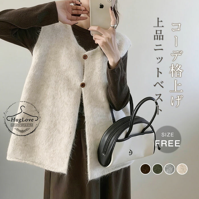 レディース 秋 ジレ ニット ベスト レイヤード 重ね着 前開き カーディガン トップス お洒落 きれいめ ノースリーブ シンプル 着回し 柔らか カジュアル 可愛い お出かけ ナチ 大人