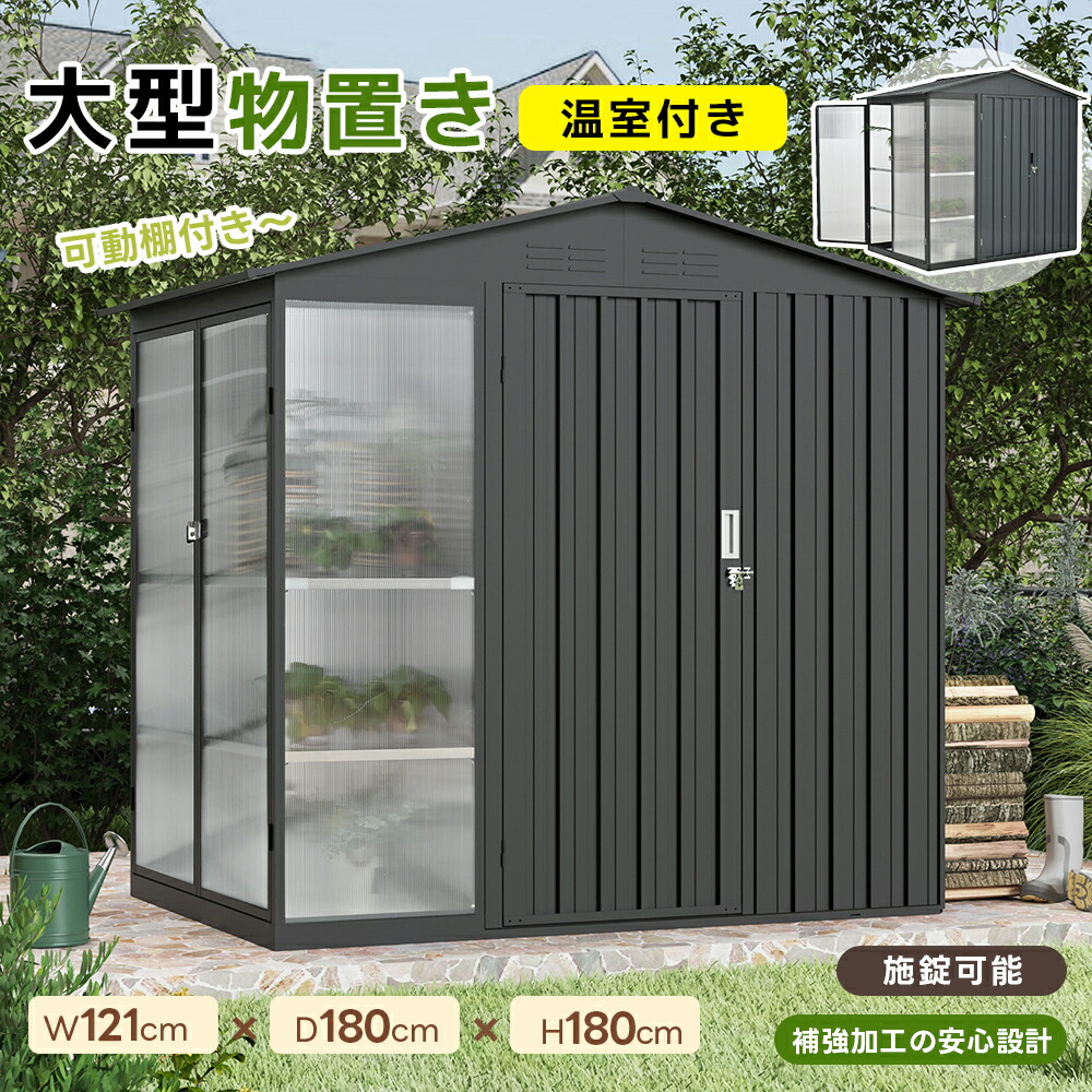 物置 屋外 スチール 可動棚 倉庫 スチール物置 戸外収納庫 可動棚W180*D121*H180cm 物置き おしゃれ 大型 収納庫 屋外物置 防さび 防水 ドア 床材補強フレーム付き ベランダ