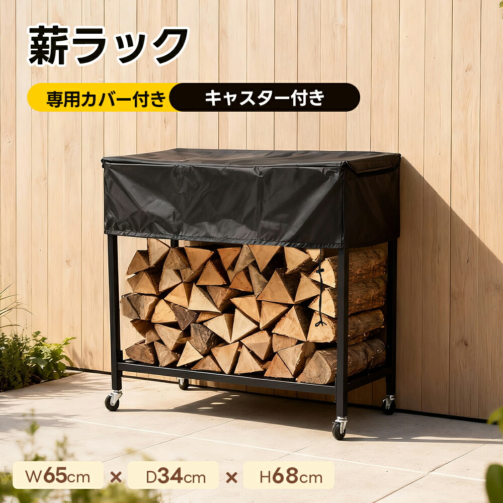 【1年保証/送料無料】薪ラック 専用カバー付き 屋外 薪ラック キャスター付き 薪棚 薪ストッカー 薪置き棚 薪ストーブグッズ 薪 ラック 組み立て式 室外 冬