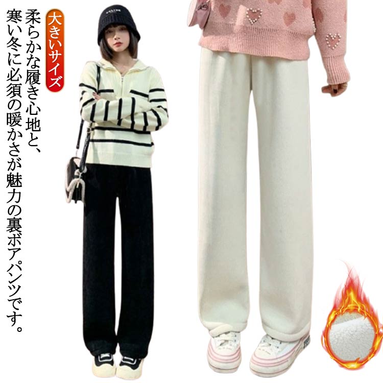 裏起毛 カジュアル パンツ 裏ボア 厚手 あったかパンツ 暖かい 防寒 冬 コーデユロイ ストレートパンツ 保温 レディース ワイドパンツ ボトムス ロングパンツ 長ズボン ウエス 体型カバー