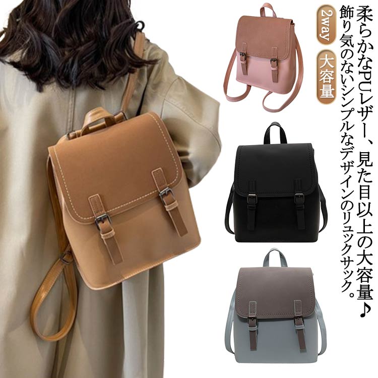 リュック レディース リュックサック 大容量 合成皮革 合皮 おしゃれ 可愛い 女子 通勤 通学 学生 コンパクト プレゼント ギフト シンプル レザーバッグ