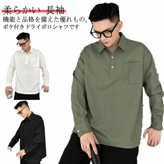 おしゃれ 長袖 メンズ 無地 M 長袖ポロシャツ ポロシャツ 透けない 大きいサイズ ボタンダウン ブラウス 長袖ブラウス 白 黒 制服 スポーツ ポケット 春夏秋冬 仕事 父の日 スポ ユニフォーム