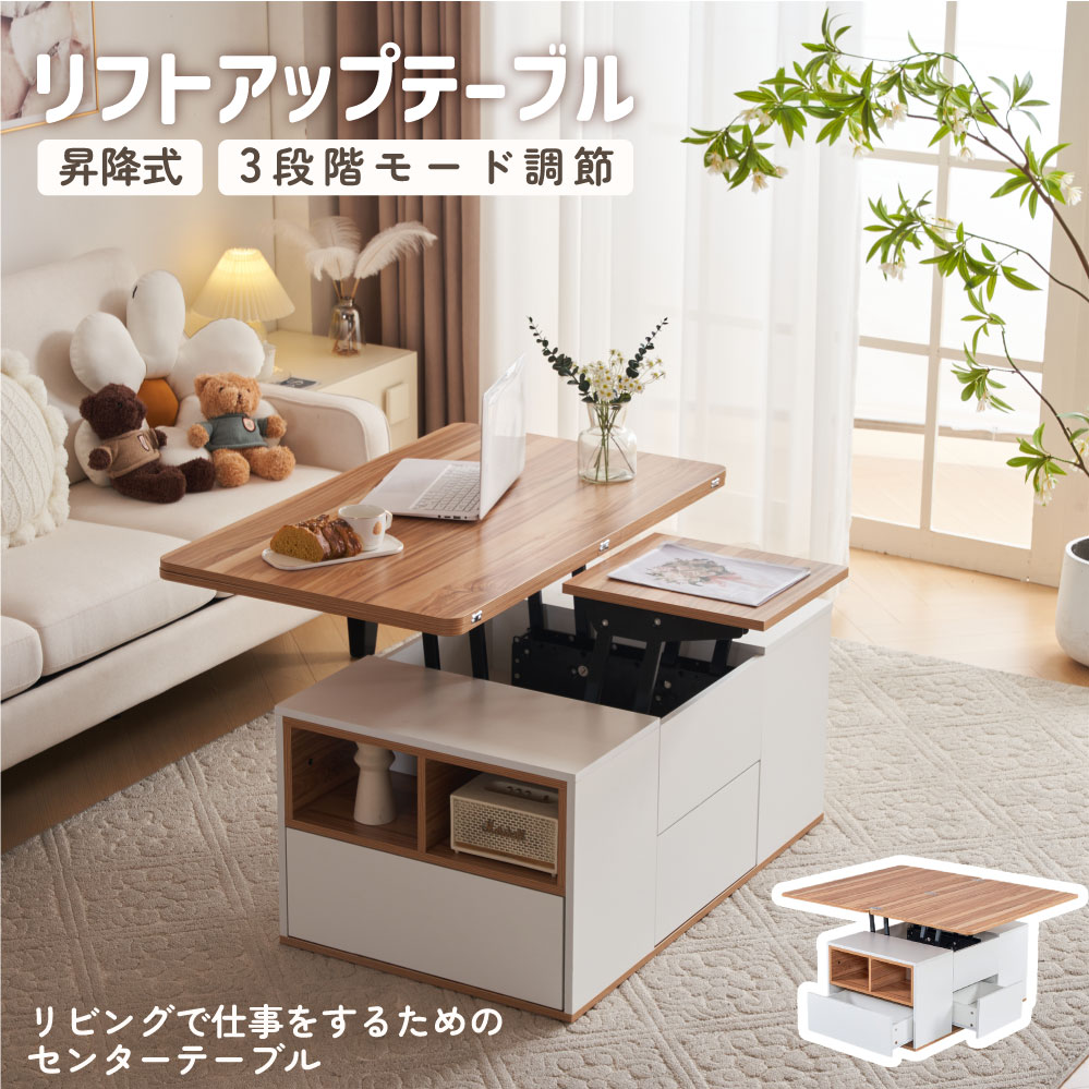 センターテーブル 昇降式 収納付き 幅100 1~4人掛け ロータイプ リフトアップテーブル 昇降 テーブル 昇降テーブル コーヒーテーブル リビングテーブル 引出し付き 食卓テーブル 一人暮 大きめ