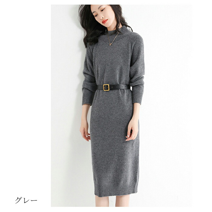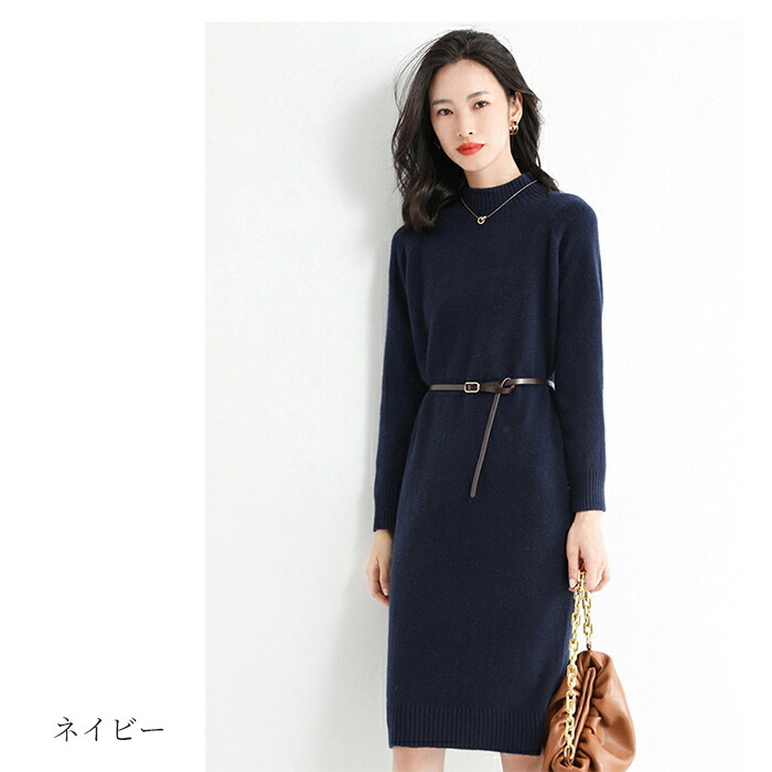ワンピース レディース カシミヤ ニッ ワンピース 続々登場 カーキー グレー ネイビー ブラック S M L XL 2XL