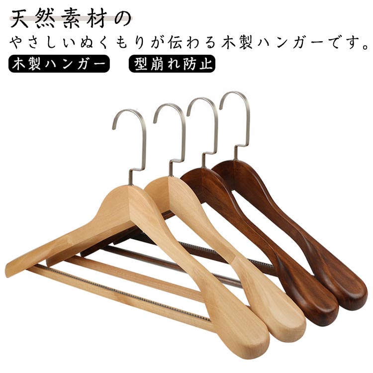 洋服ハンガー 木製 6本セット 衣類ハ ナチュラル男性用 ナチュラル女性用 ブラウン男性用 ブラウン女性用