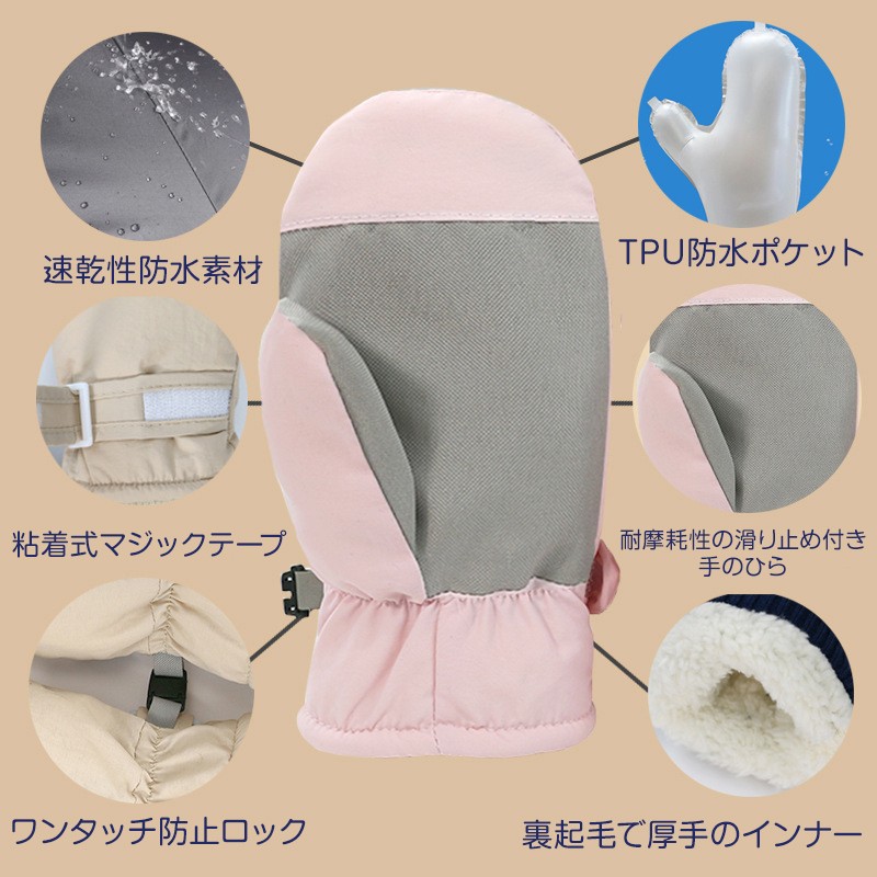 キッズ 子供 ミトン スキー手袋 スキ キッズ ベビー マタニティ 早い者勝ち ブラック グレー ネイビー ピンク ベージュ ホワイト S(3ヶ月-2歳) M(2-4歳) L(4-8歳)