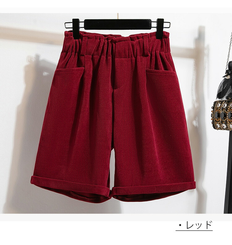 コーデュロイ ショートパンツ 冬 レデ ボトムス パンツ 続々登場 ベージュ ブラック レッド S M L XL 2XL 3XL 4XL
