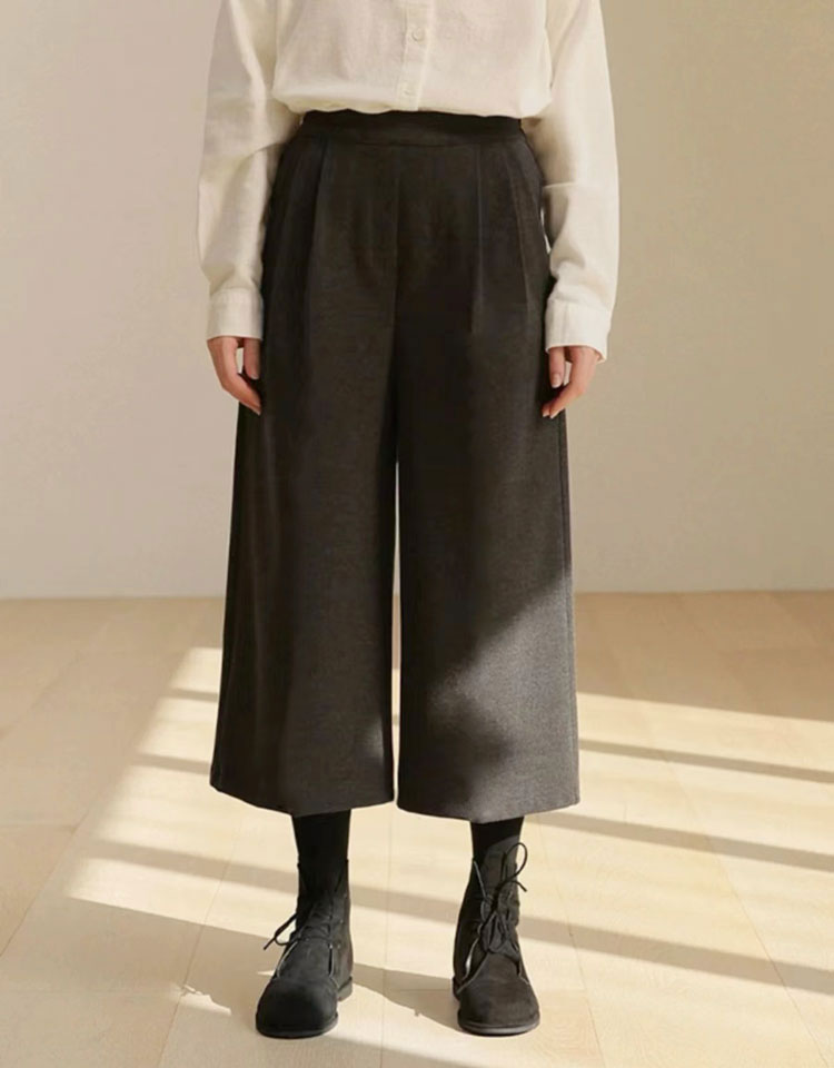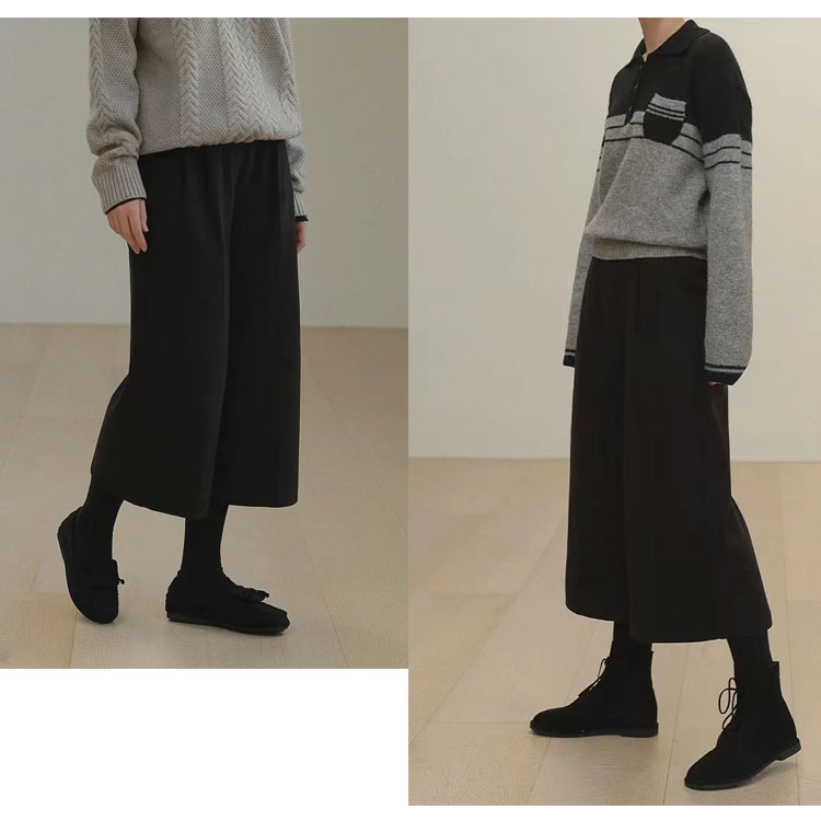 ウール調 ガウチョパンツ レディース ボトムス パンツ 続々登場 グレー ブラック