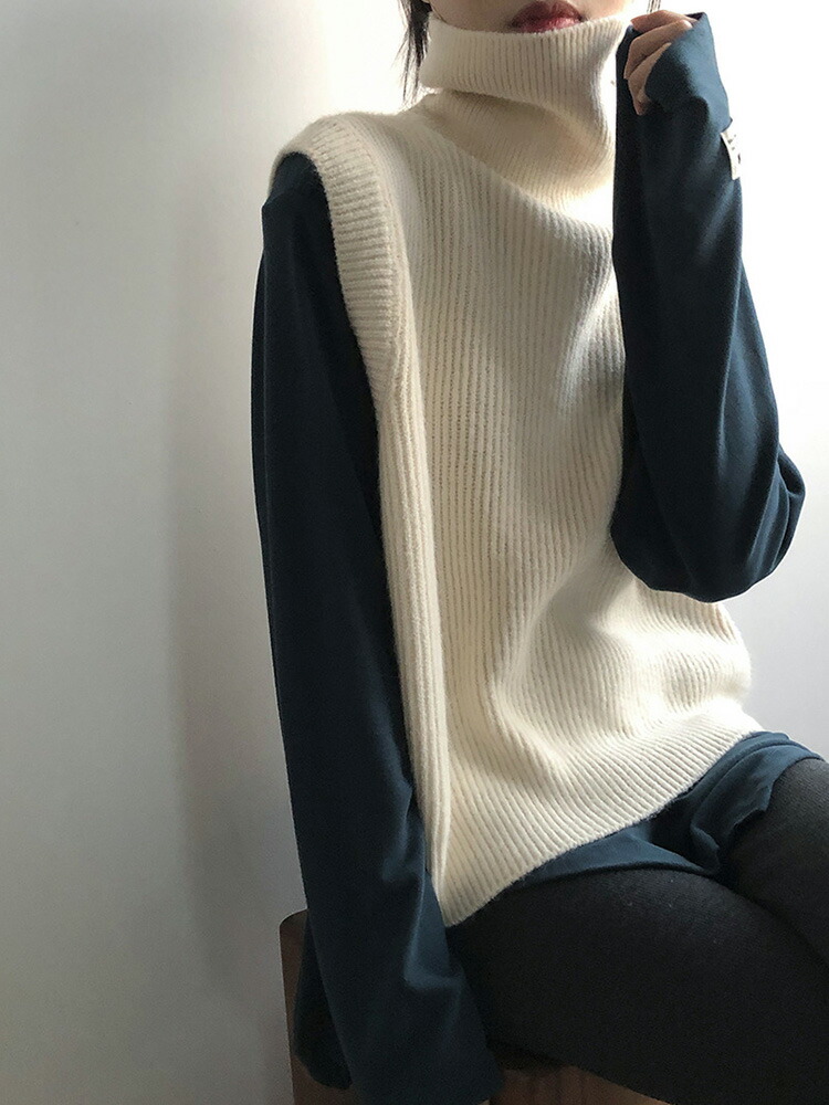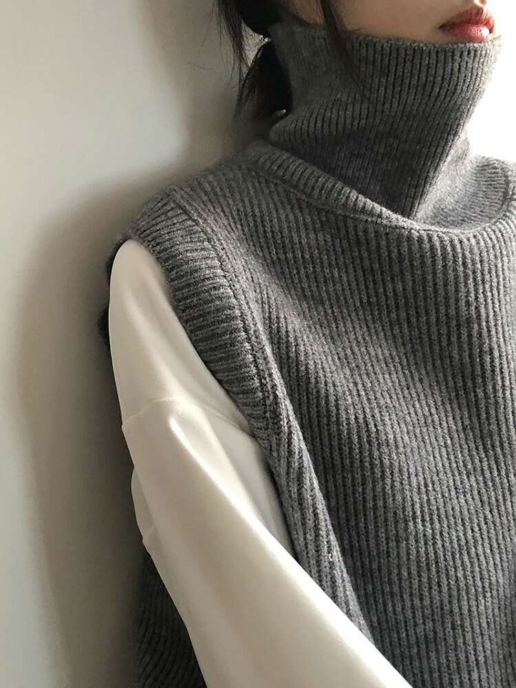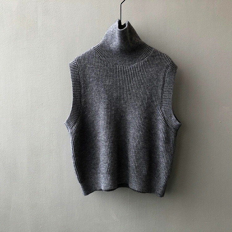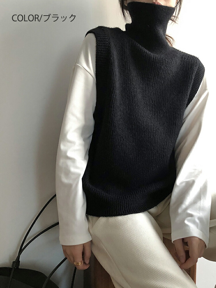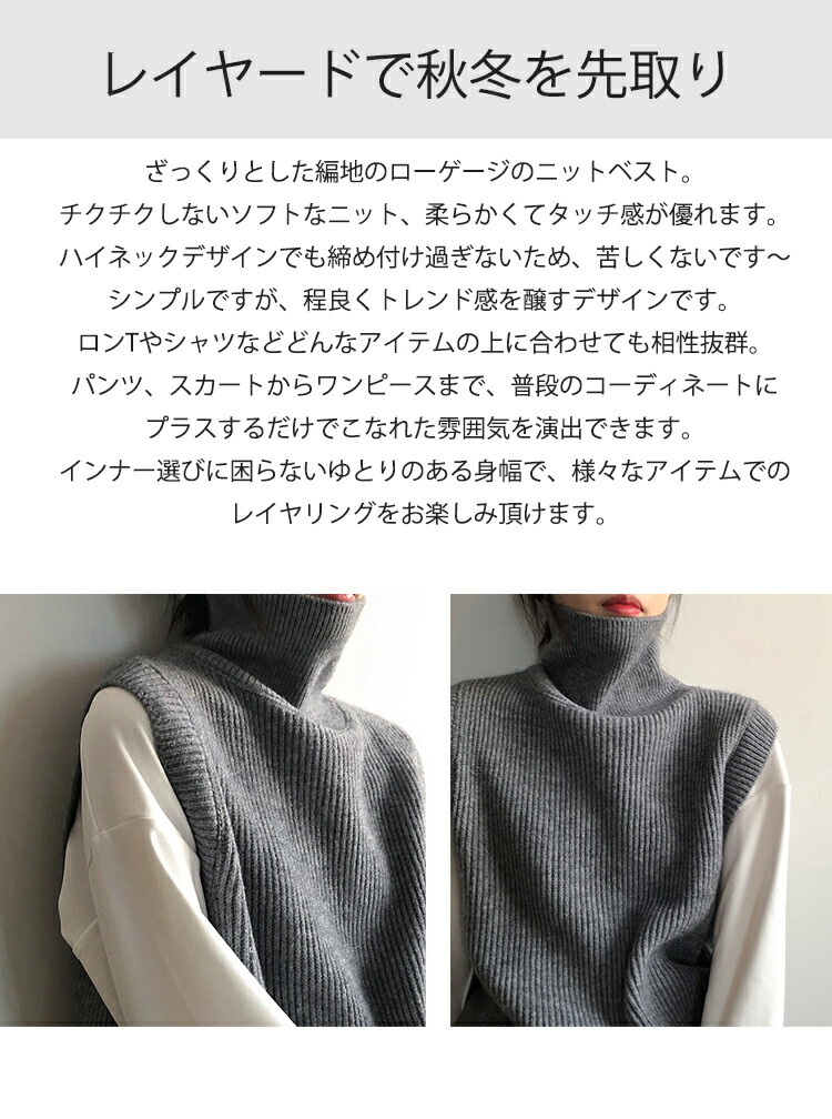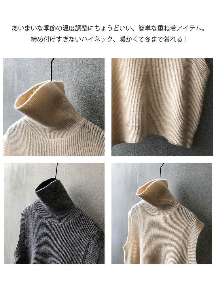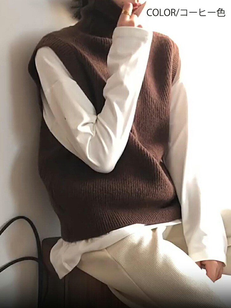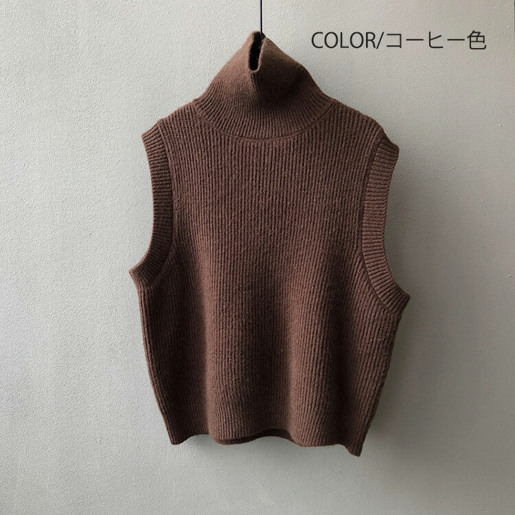 ニットベスト レディース 秋冬 ハイネ トップス ベスト 豊富な品揃え オフホワイト コーヒー色 グレー ブラック タートルネック プチハイネック