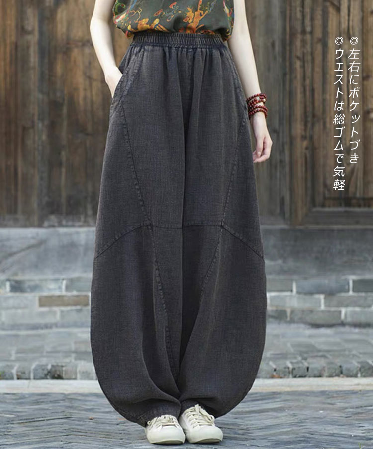 バルーンパンツ レディース 秋冬 コーデュロイ パンツ 冬用 ワイドパンツ ロング コーデュロイパンツ ワイド 大きいサイズ 裏 ボア ポケット ウエストゴム ゆったり カジュアル 黒 コクーンパンツ
