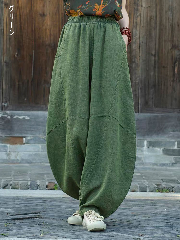 裏起毛 バルーンパンツ レディース 秋 ボトムス パンツ 続々登場 ブラック イエロー グリーン 麻色 M L XL 2XL