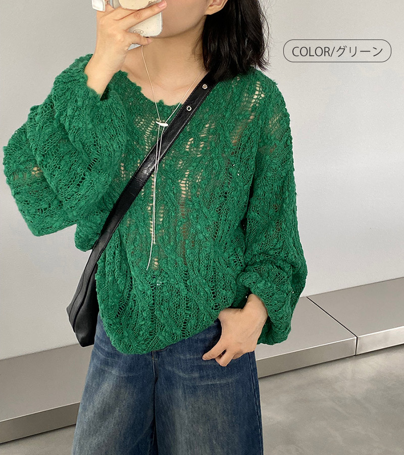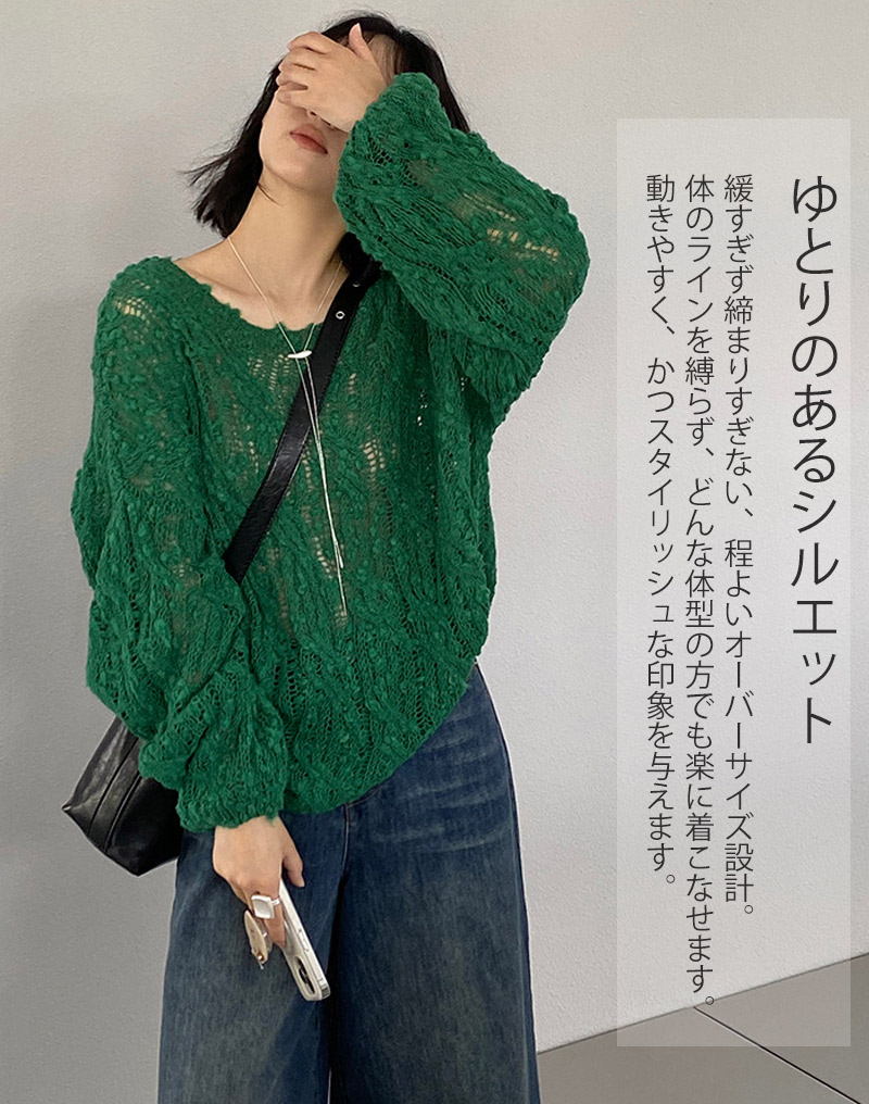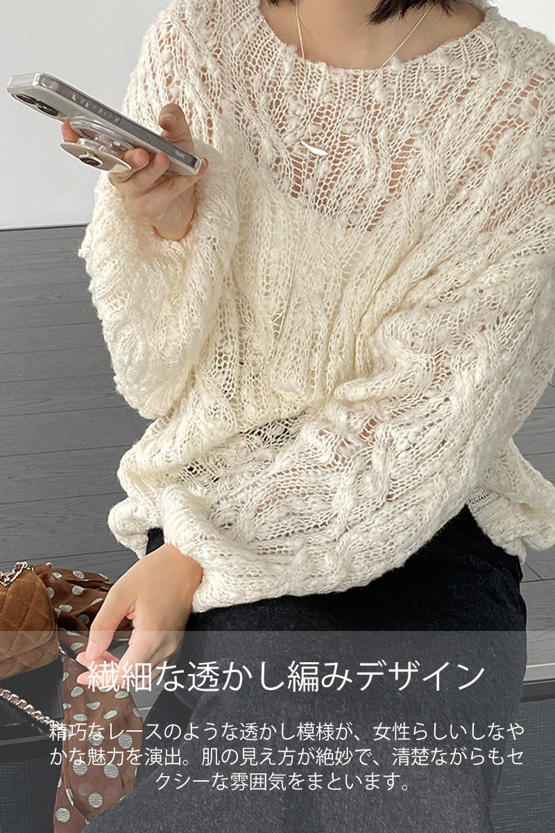 ニット 透かし編み シアー プルオーバ レディースファッション 豊富な品揃え アイボリー グリーン イエロー