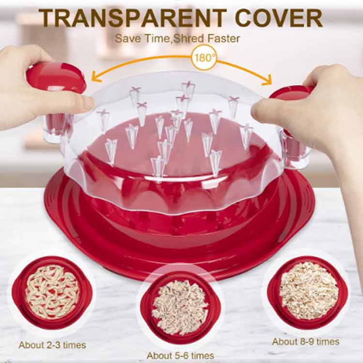 中央のアップグレードされた回転構造と、チキンシュレッダー、チキンシュレッダーツールの透明度はっきりとカバーします。通常のクマの爪よりも6倍速く、肉を数秒で細断するか、お好きな細断方法を選択できます(チキンナゲットまたはチキンの細断)。