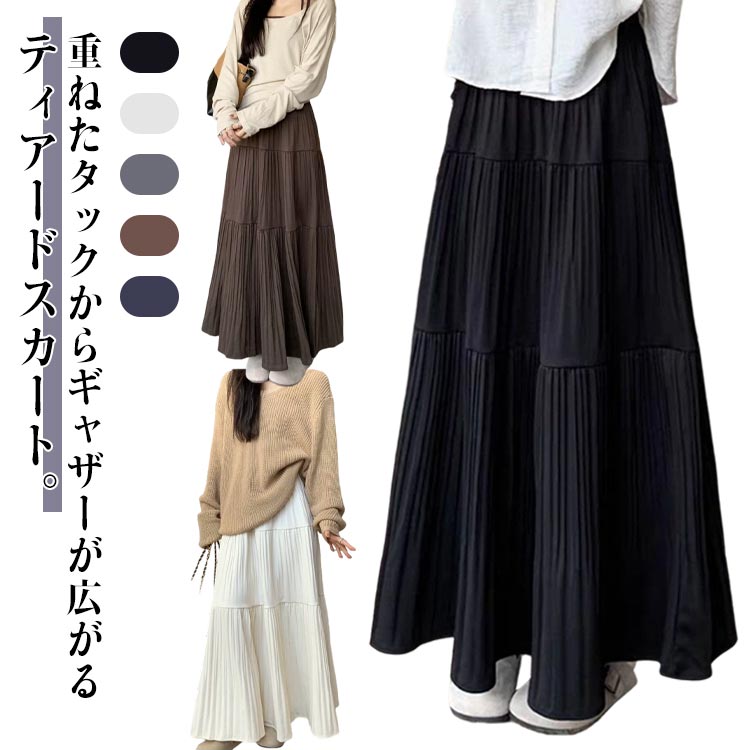 スカート プリーツティアードスカートA レディースファッション 特集 ブラック ベージュ グレー ブラウン ネイビー S M L XL