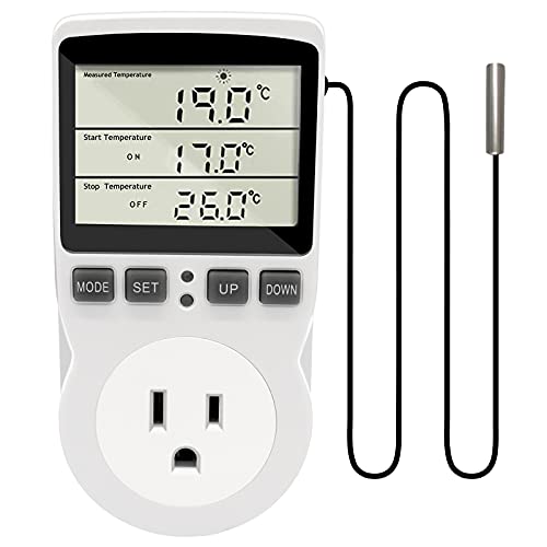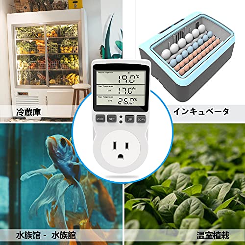 RUIZHI デジタルサーモスタット、検出器付きタイマーカウントダウンスイッチソケット、サーモスタット、水族館、爬虫類、温室種子発芽空気取り入れ口、冷蔵庫用