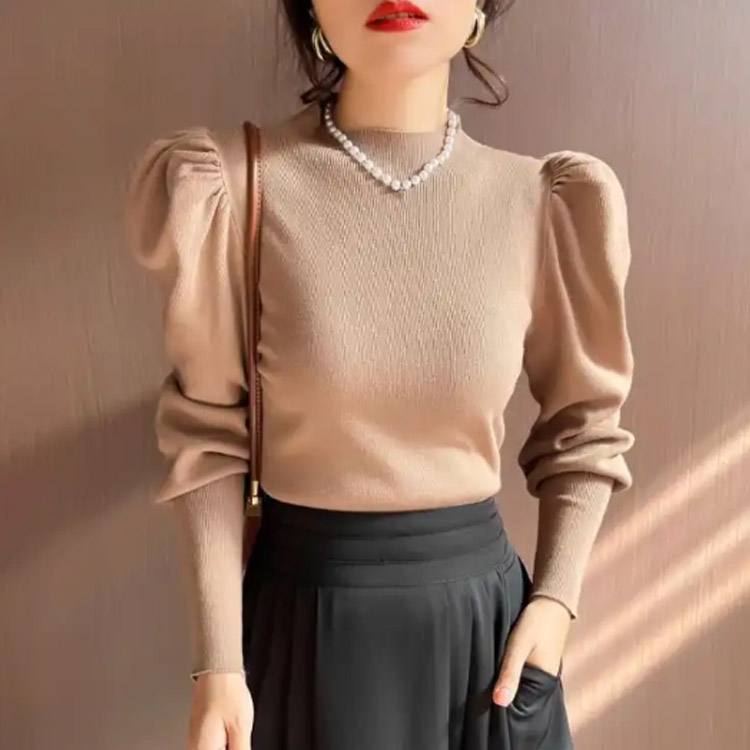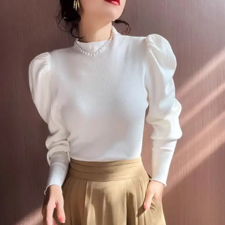 パワショル ニット ハイネック タート レディースファッション 豊富な品揃え ホワイト ブラック キャメル レッド イエロー S M L XL