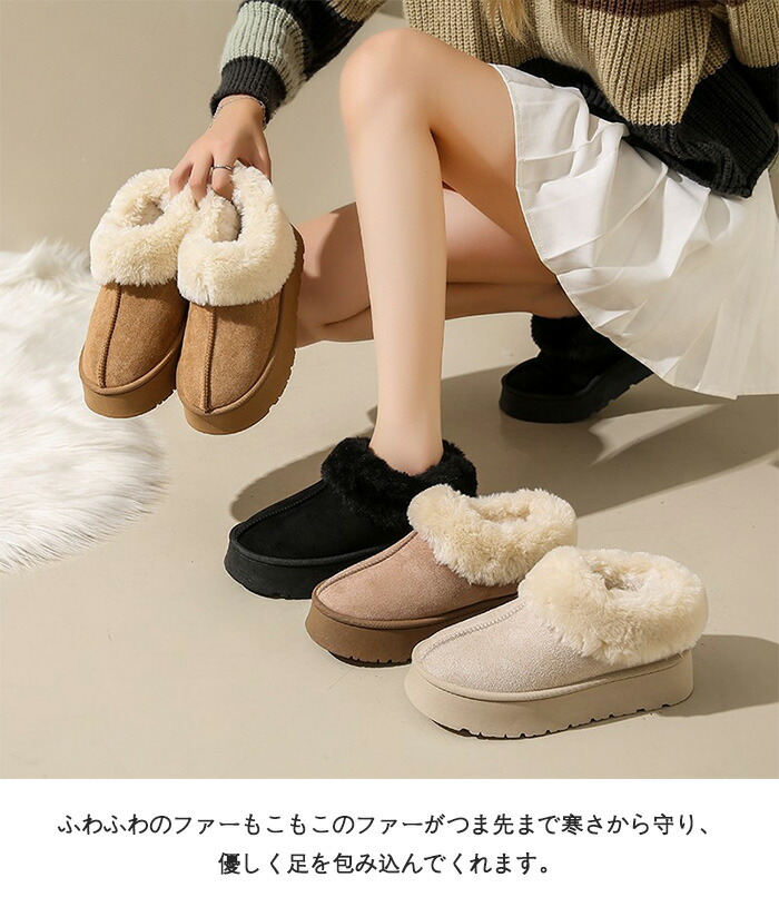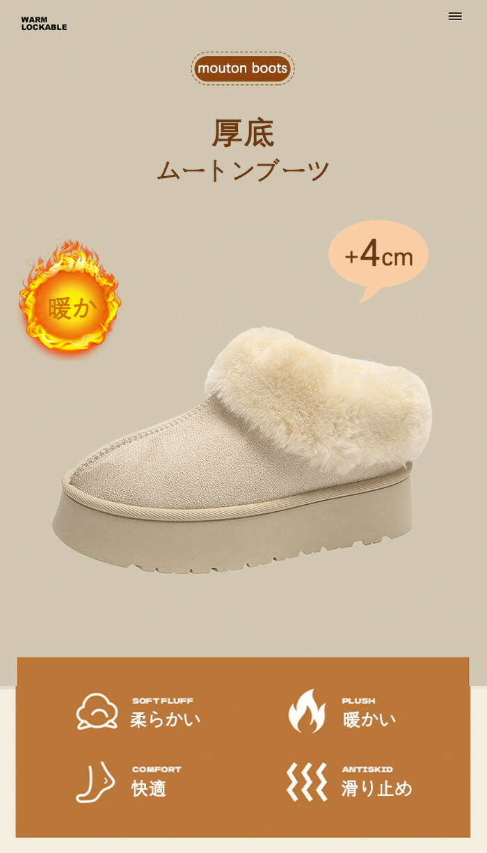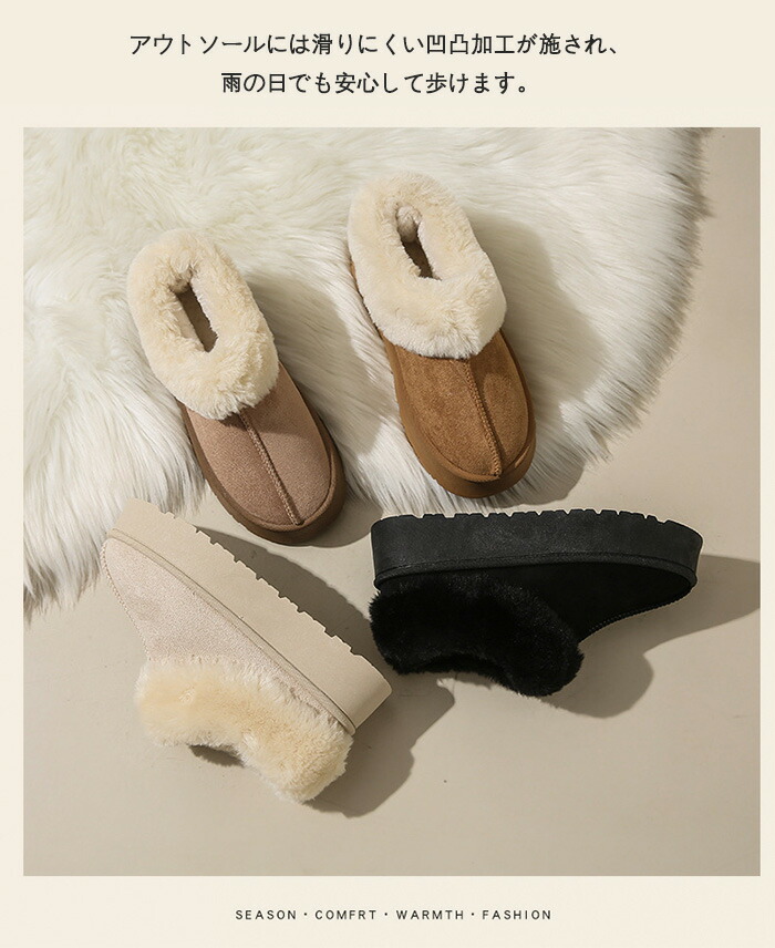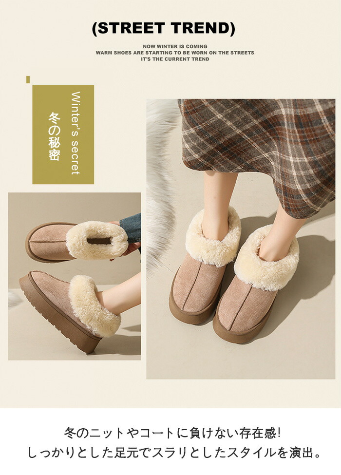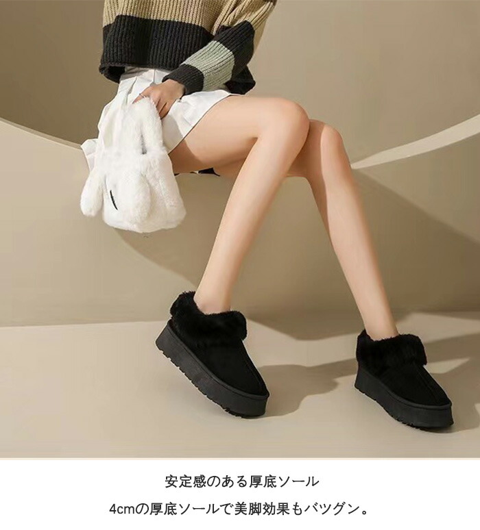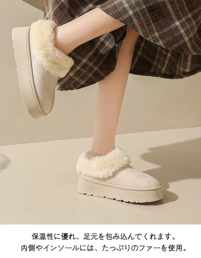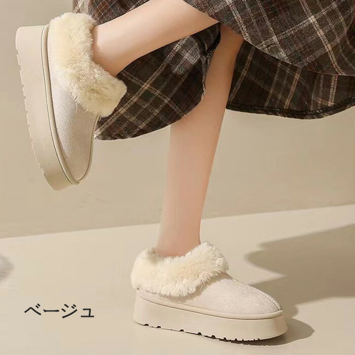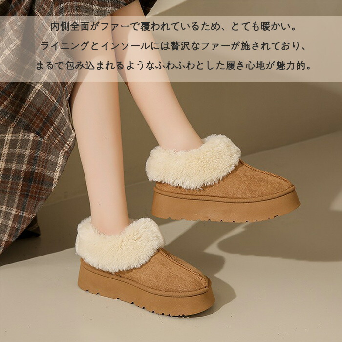 商品名:ムートンブーツ ショートブーツ 厚底 4cmヒール 身長アップ レディース スエード ファー ボアブーツ 疲れない 裏ボア 裏起毛 防寒 保温 軽量 軽い あったか スノーブーツ もこもこ 暖かい おしゃれ 歩きやすい 旅行 春 秋 冬用 スノーシューズ フラットシューズ ローカット シンプル 雪靴 厚底ムートンスリッポン ミニ丈 ラウンドトウ