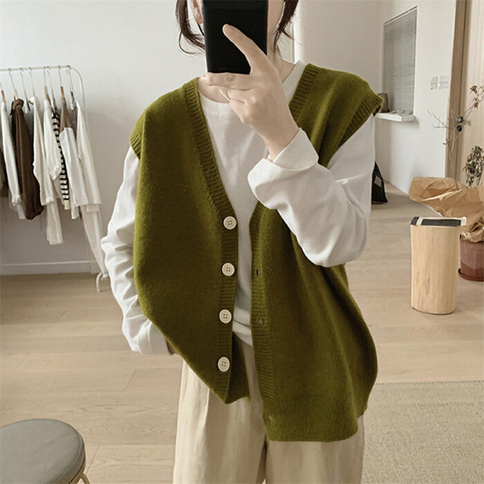 ニット ベスト 前開き レディース 秋 レディースファッション 豊富 ベージュ ブラック グリーン オフホワイト