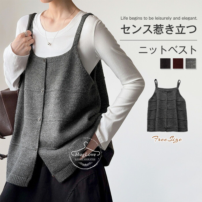 レディース ニットベスト 秋冬 キャミ レディースファッション 豊富な品揃え コーヒー グレー ワインレッド