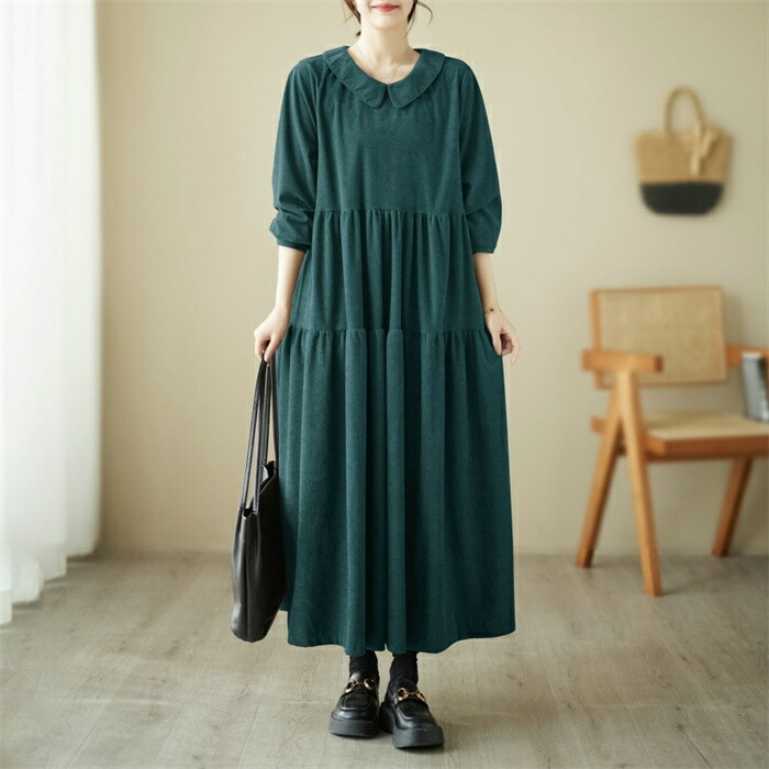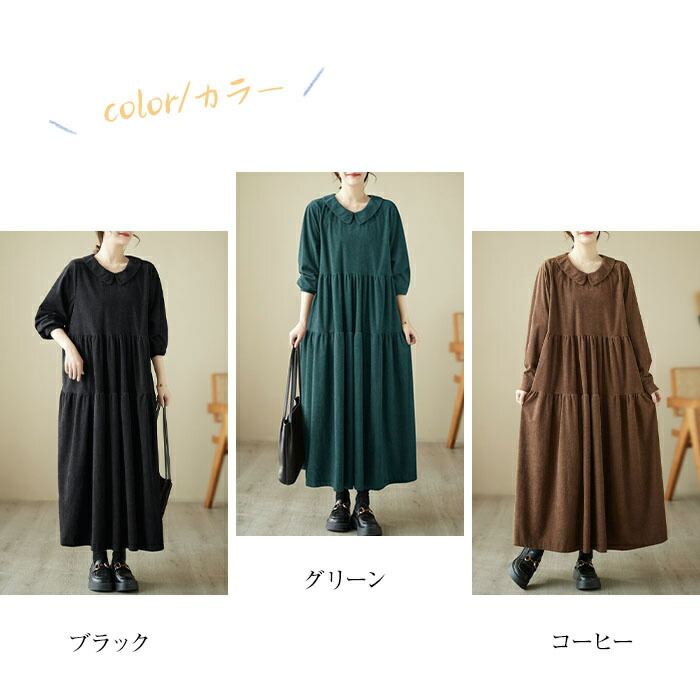 シャツワンピース 秋冬 コーデュロイワ ブラック グリーン コーヒー